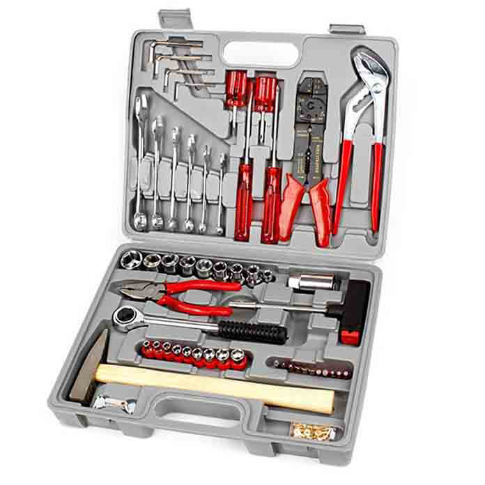 U kompletu se nalaze imbus ključevi, okasto-vilasti ključevi, šrafcigeri, nasadni ključevi u dimenzijama 1/2" i 1/4", raznovrsni bitovi, klješta različite namene, čekić i T-drška sa nosačem. Alat je izrađen od kvalitetnog čelika, namenjen za svakodnevnu upotrebu u radionicama, domaćinstvu, auto-servisima i na terenu.