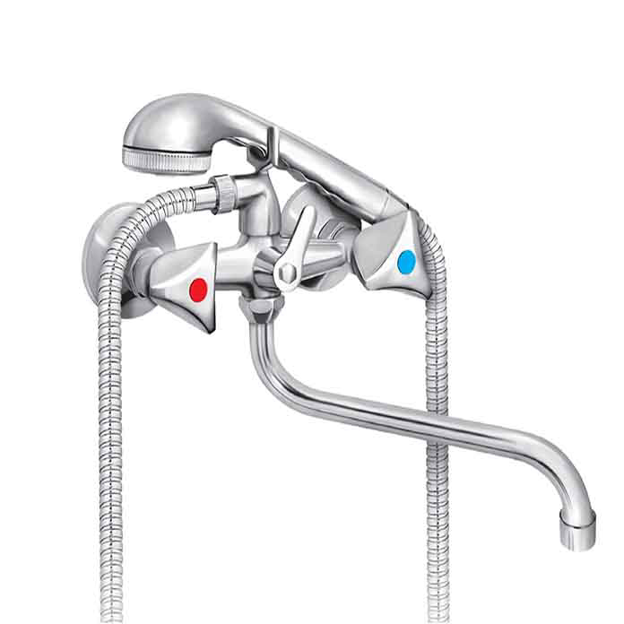 Model K11101 je zidna dvoručna baterija za kadu sa pokretnim izljevom dužine 300 mm i regulacijom protoka do 5 l/min na tušu. Dolazi sa kompresionim gornjim delovima 1/2", metalnim trokrakim rukohvatima i praktičnim ručnim tušem. Duplo pleteno tuš crevo dužine 1.5 m, ručni prebacivač, Heavy Duty ekscentar kolena i hromirane rozete osiguravaju pouzdanu montažu i dug radni vek.