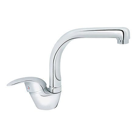 🚰 Jednoručna baterija za sudoperu 🕳️ Montaža na jedan otvor 🔗 Otvorena veza bojler–baterija 📏 Kratak pokretni izliv 💧 Prilagođena za prelivni bojler 💦 NEOPERL® Honeycomb perlator 🔧 Keramički mešač KEROX® 35 🔇 Klasa bučnosti II