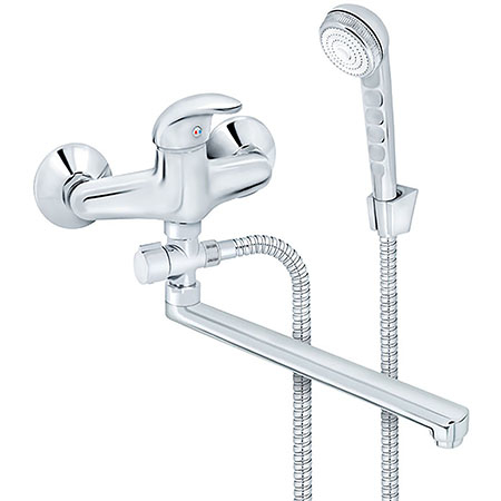 Baterija PERLA JP341001, poznata kao „Švedska“ varijanta, namenjena je za zidnu montažu i pogodna je za kombinovanu upotrebu na kadi i lavabou. Karakteriše je produženi liveni izliv dužine 300 mm, koji omogućava jednostavno korišćenje iznad kade ili lavaboa, uz moderan i funkcionalan dizajn.