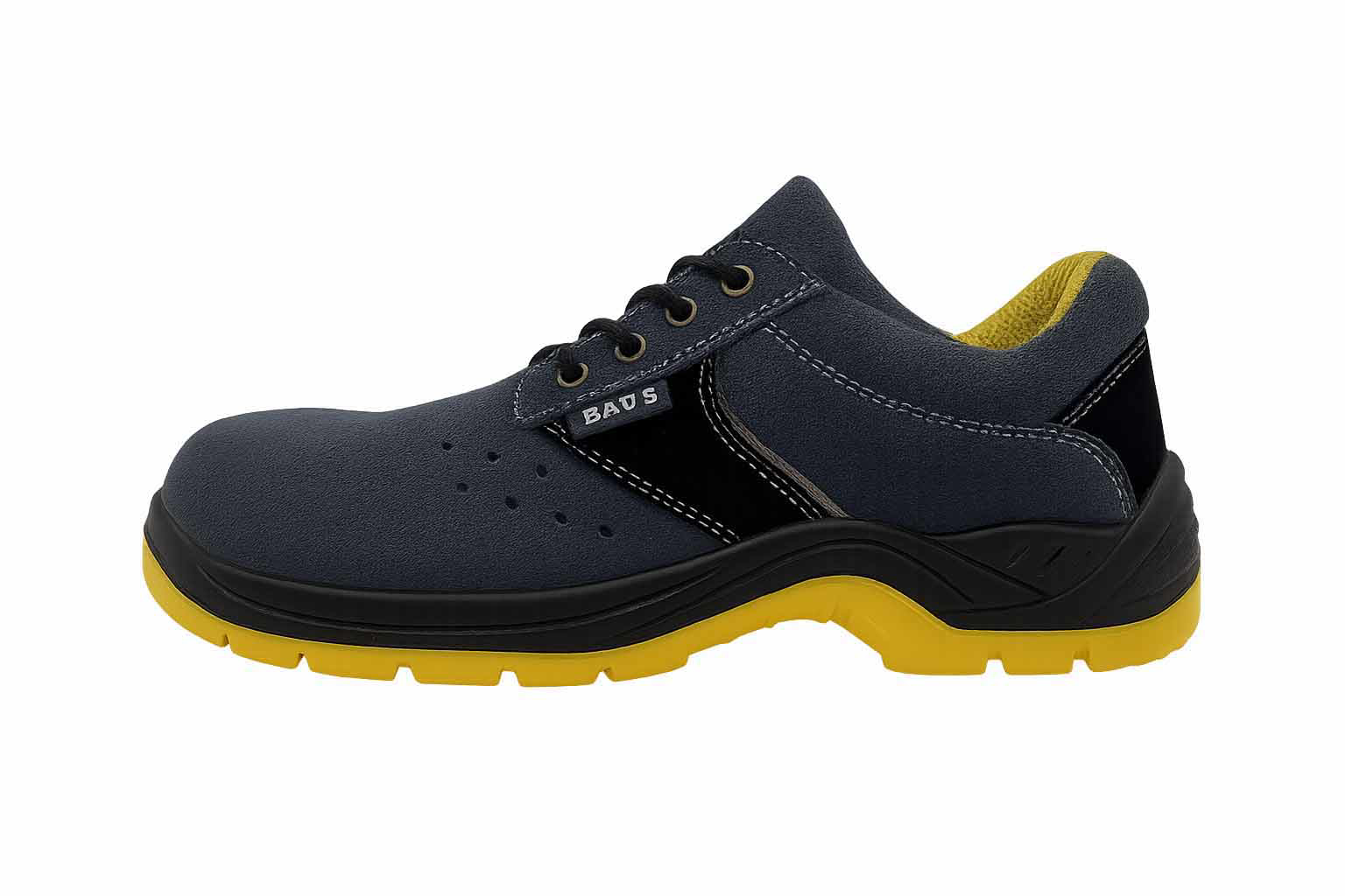 BAU S ATOS O1 SRC su niske radne cipele namenjene za upotrebu u suvim radnim uslovima, kao što su magacini, radionice i proizvodni pogoni. Gornji deo je izrađen od plave brušene kože, dok svetložuti đon od poliuretana nudi visok nivo otpornosti na klizanje (SRC). Cipele nemaju čeličnu kapicu, što ih čini laganim i udobnim za celodnevno nošenje. Idealne su za korisnike koji ne zahtevaju zaštitu od pada teških predmeta, ali žele stabilnost i sigurnost na radnom mestu.