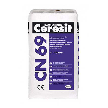 Ceresit CN 69 je samonivelirajuća masa namenjena za izravnavanje cementnih i betonskih podloga u unutrašnjim prostorijama pre postavljanja završnih podnih obloga kao što su keramika, PVC, parket, laminat ili tepih. Nanosi se u slojevima od 1 do 10 mm. Masa se lako razliva i formira glatku, ravnu površinu bez potrebe za dodatnim brušenjem. Odlikuje je visoka čvrstoća, brzo vezivanje i pogodnost za ručno i mašinsko nanošenje. Ne preporučuje se za spoljašnju upotrebu i za površine izložene trajnoj vlazi.