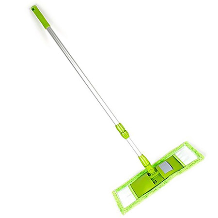 Teleskopska drška omogućava podešavanje dužine prema potrebama korisnika, čime se smanjuje napor prilikom čišćenja i poboljšava ergonomija rada. Široka ravna glava sa navlakom omogućava brzo i ravnomerno uklanjanje prašine, prljavštine i fleka sa podova.
