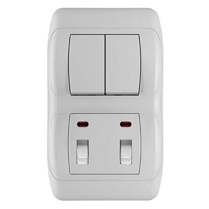 💡 Kontrola svetla, grejalice i bojlera 🔌 Ugrađena utičnica za dodatnu praktičnost ⚡ Tri nezavisna kruga 10AX / 2 x 16AX / 10AX 📏 Ugradna kutija 130 x 80 x 45 mm 🧩 Dimenzije maske 150 x 90 mm 🏠 Idealno za kompletne kupatilske instalacije