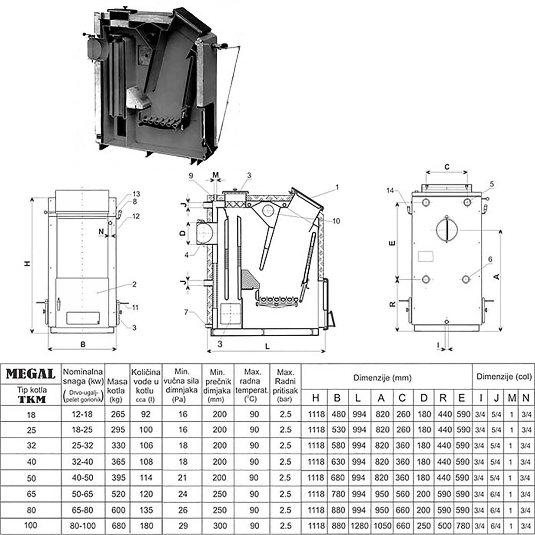 • Osim visokog stepena iskoršćenja energije goriva kotao TKM poseduje i konstruktivne osobine koje garantuju vrhunski kvalitet i dugi vek trajanj
