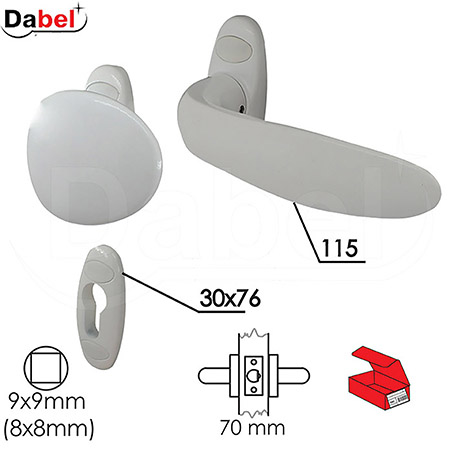 Kvaka rozeta za ALU vrata DABEL GOČ ŠAPA RAL9016 bela 30/76/10/115/70/8/9 mm cilindar Q 0101564