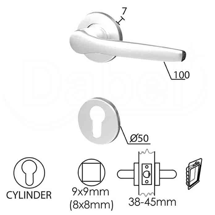 📏 Dimenzije: rozeta Ø50 mm, ručica 100 mm, debljina 7 mm