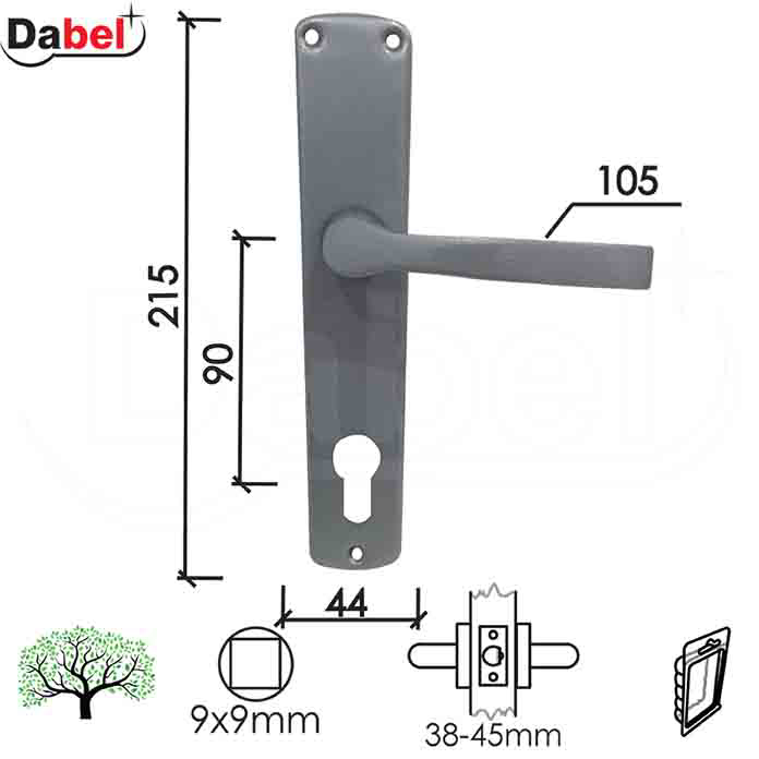 Kvaka šild za vrata DABEL CER siva 90/44/215/7/105/9 mm cilindar 0101899