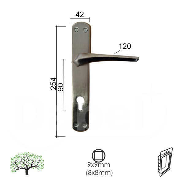 🛠️ Materijal: aluminijum 🎨 Boja: crna mat 📏 Dimenzije: 90/42/254/10/120 mm 🔑 Otvor za cilindar bravu 🚪 Pogodna za drvena vrata (38–45 mm) 📦 Pakovanje: trgovačko kačenje