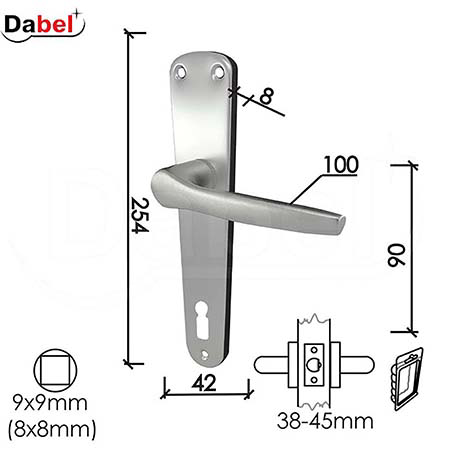 Predviđena je za montažu na drvena vrata debljine 38–42 mm, sa osovinom 9x9 mm (dostupna i opcija 8x8 mm).