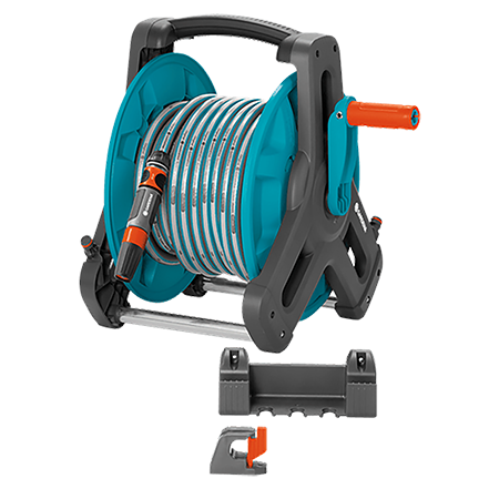 Set dolazi sa zidnim nosačem koji omogućava praktično skladištenje creva na zidu i uštedu prostora. Po potrebi, motalica se može jednostavno skinuti sa nosača i koristiti mobilno u bašti. Integrisana ergonomska ručka omogućava lako prenošenje i rukovanje.