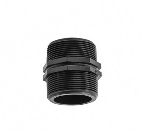 Plastični dupli nipl 2" namenjen je za povezivanje dva fitinga sa unutrašnjim navojem u sistemima za navodnjavanje i vodovodnim instalacijama