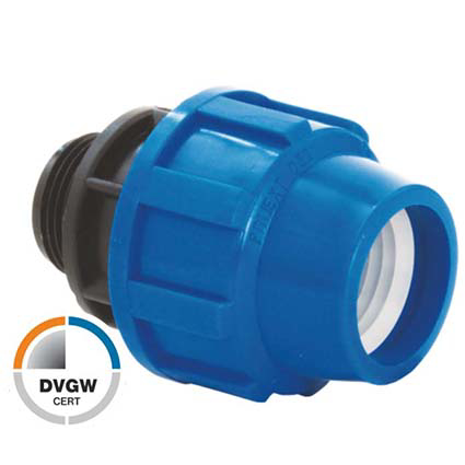 🔩 PP poluspojnica 25x3/4" PN16 💧 Cev 25 mm + spoljni navoj 3/4" 🔗 Prelaz sa PE cevi na metalnu instalaciju 🛠️ Brza i sigurna montaža 🔒 Otpornost do 16 bara