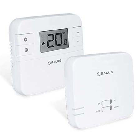 SALUS RT310RF je digitalni bežični elektronski termostat namenjen za kontrolu grejnih uređaja koji poseduju priključak za ON/OFF termostat. Preporučuje se za gasne i čvrstogorivne kotlove, kao i druge uređaje za grejanje.