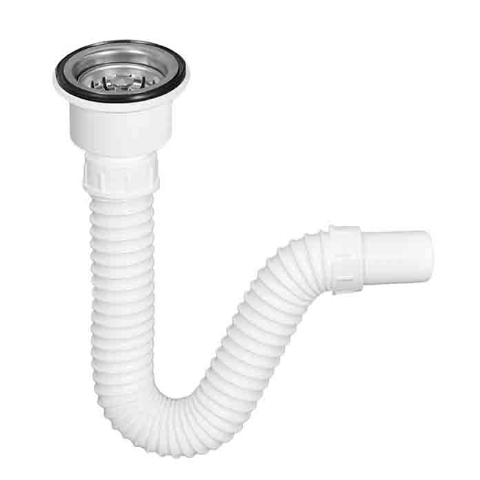 Sifon sudopere fleksibilni jednodelni Ø60 S-11433 namenjen je za ugradnju u sve tipove sudopera sa otvorom Ø60. Izrađen je od savitljive PVC cevi prečnika 40 mm, koja je iznutra potpuno glatka radi optimalnog protoka vode i lakog čišćenja, dok je spolja spiralno motana radi povećane fleksibilnosti.