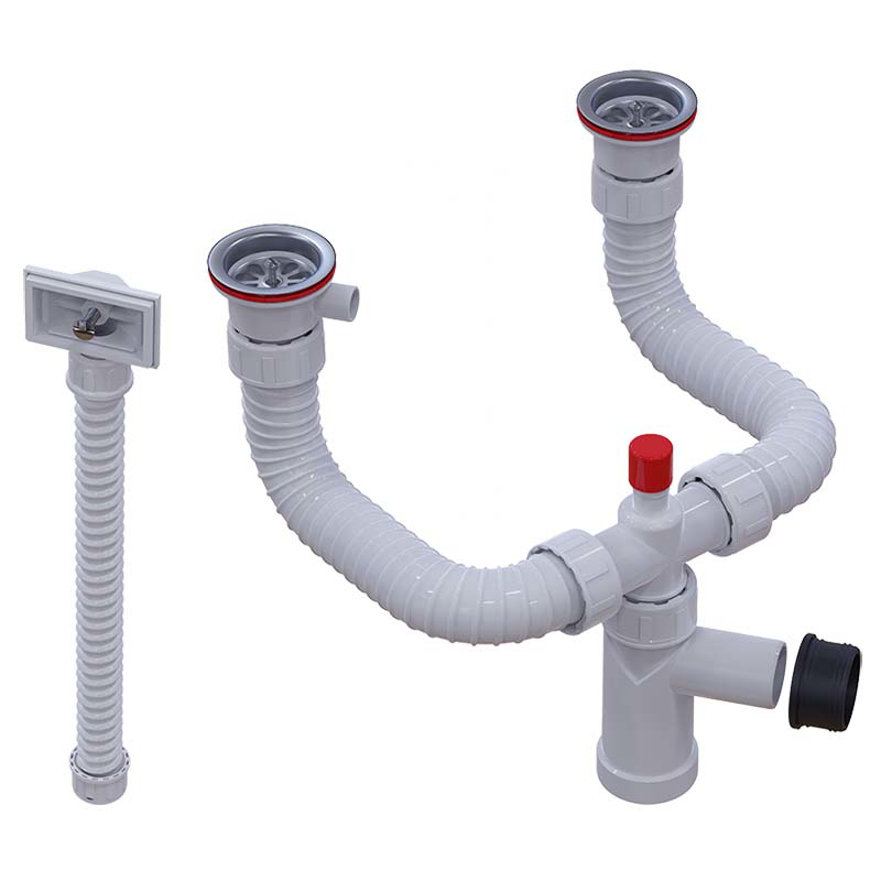 🧼 Sifon za dvodelnu sudoperu – KRUTI 2/1 sa prelivom