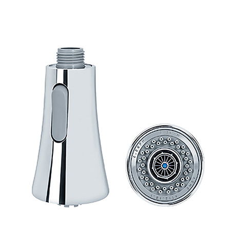 Tuš ruža za bateriju sa izvlačnim tušem PTR385JC-3 namenjena je za ugradnju na kuhinjske i lavabo baterije sa izvlačnim tušem. Omogućava praktičniju i fleksibilniju upotrebu vode pri pranju sudova, sudopere i radnih površina.Ruža je izrađena od kvalitetnih materijala sa hromiranom završnom obradom, koja obezbeđuje otpornost na vlagu, dug vek trajanja i lako održavanje. Moderan, sužen dizajn omogućava estetsko uklapanje uz savremene sanitarne baterije.Na telu se nalazi integrisani prekidač za promenu režima mlaza, što omogućava jednostavno prebacivanje između različitih tipova protoka vode. Standardni navoj G1/2" obezbeđuje široku kompatibilnost i jednostavnu montažu.Tuš ruža je kompaktnih dimenzija, visine 116 mm i prečnika baze 58 mm, što je čini pogodnom i za manje sudopere i umivaonike.