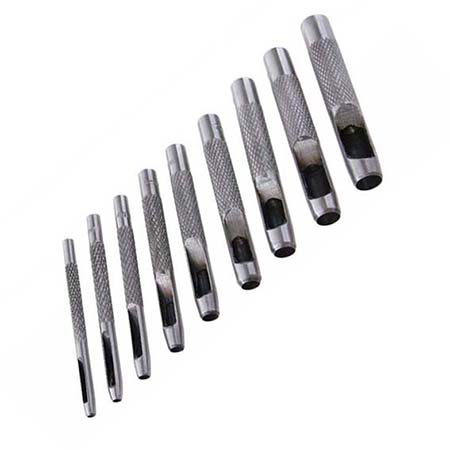 Set zumbi – izrezivača rupa namenjen je za precizno probijanje i izradu rupa u koži, gumi, plastici, kartonu i sličnim materijalima. Pogodan je za zanatske, tapetarske, obućarske, bravarske i hobi radove gde je potrebna tačna i čista rupa.